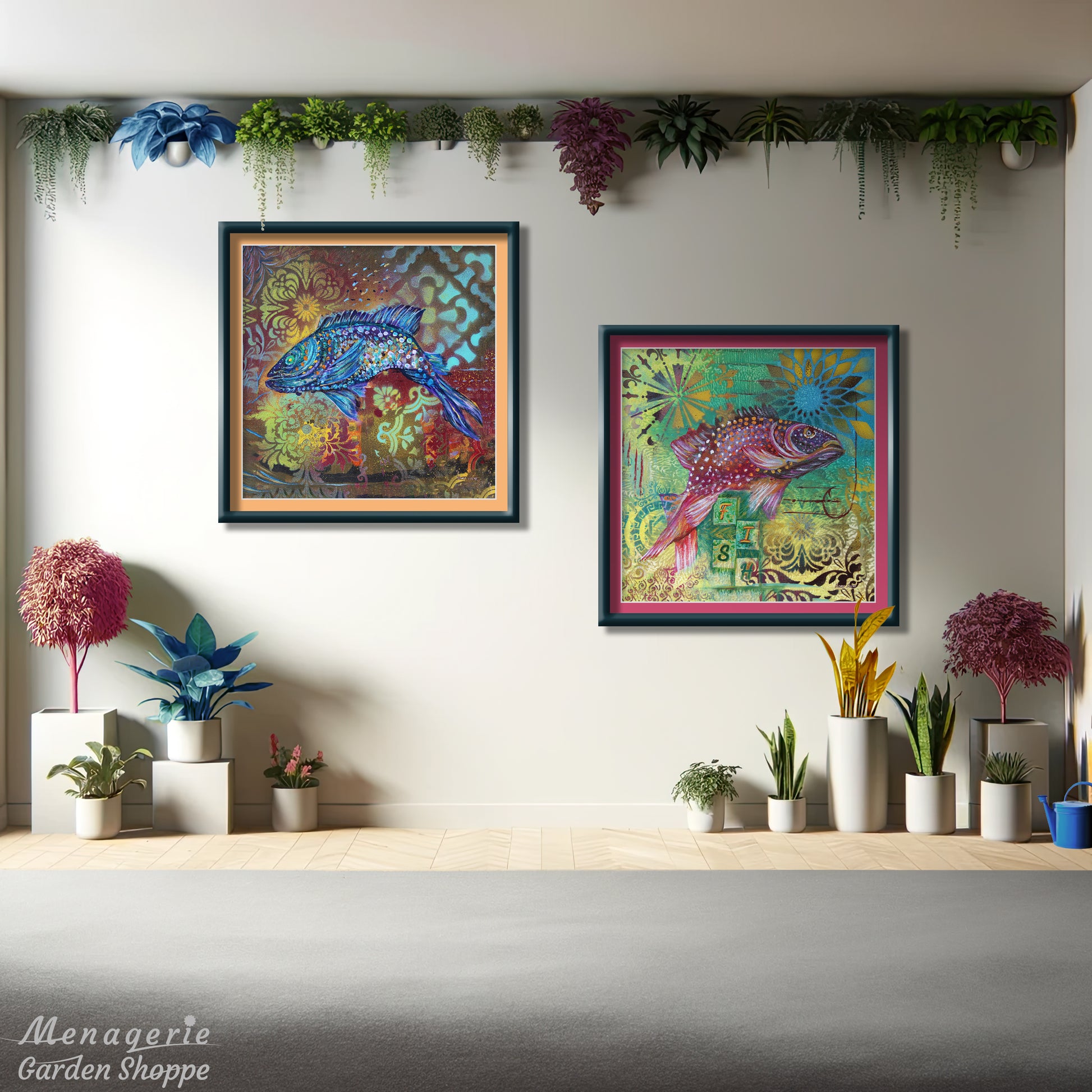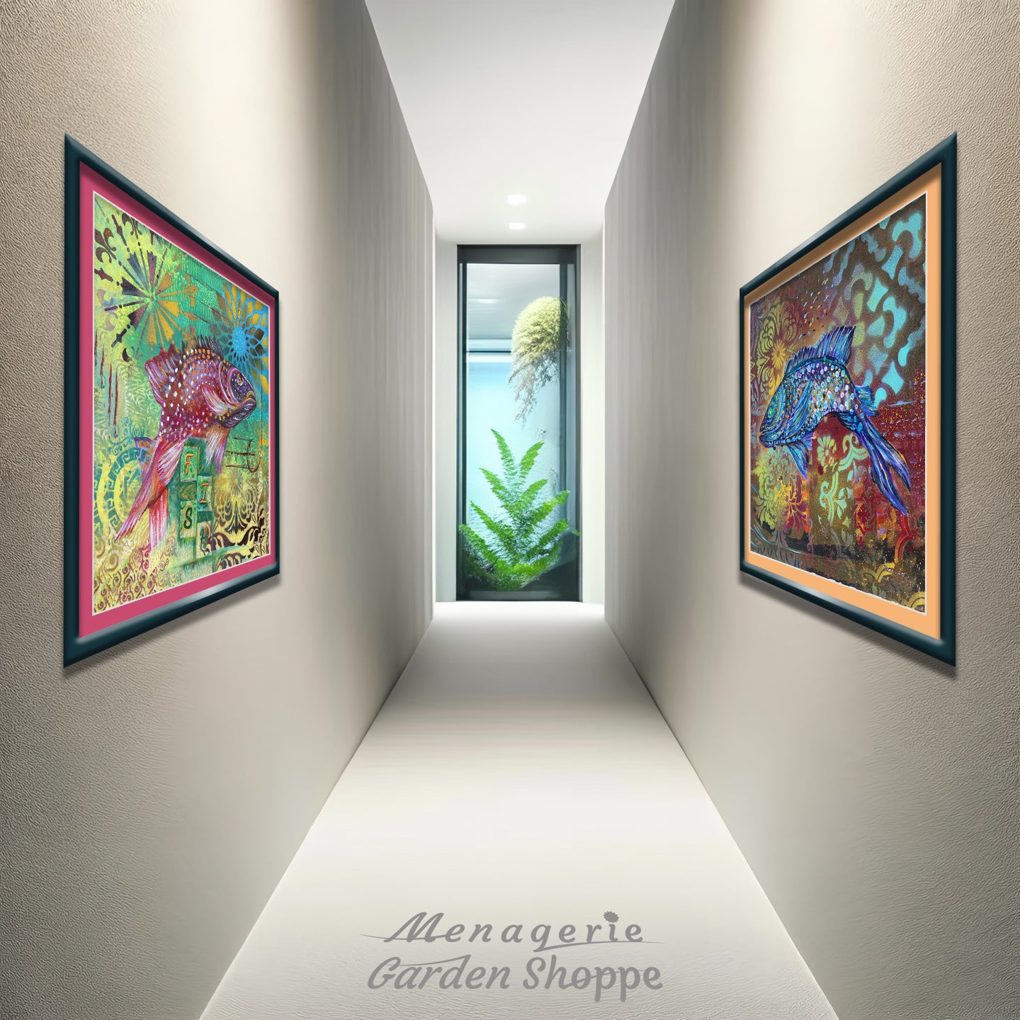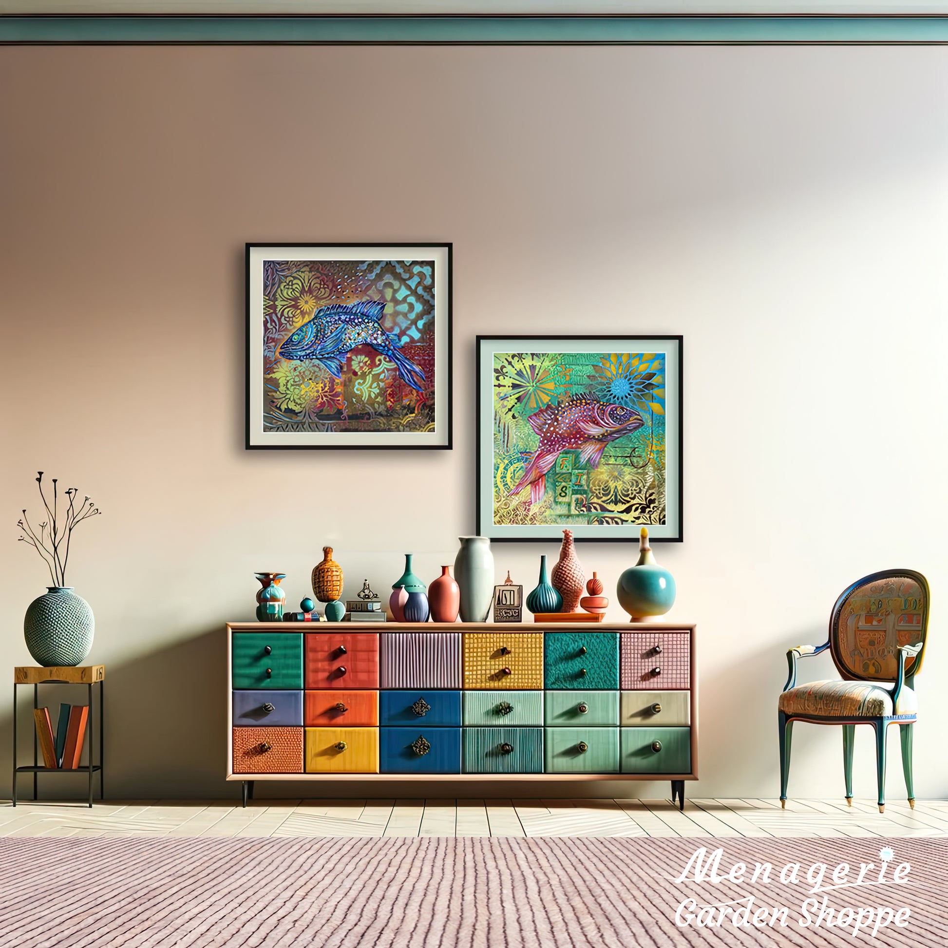 "Convergence of the Deep" with our "Kaleidoscope of the Deep" and "Mosaic of the Deep" art prints. These masterpieces transform your living space into an underwater realm of vivid imagination, where the colors of the ocean come alive on your walls. These prints, capturing the essence of the sea's majesty, promise to be not just a focal point for any room but a window to an enchanting world below the waves.
