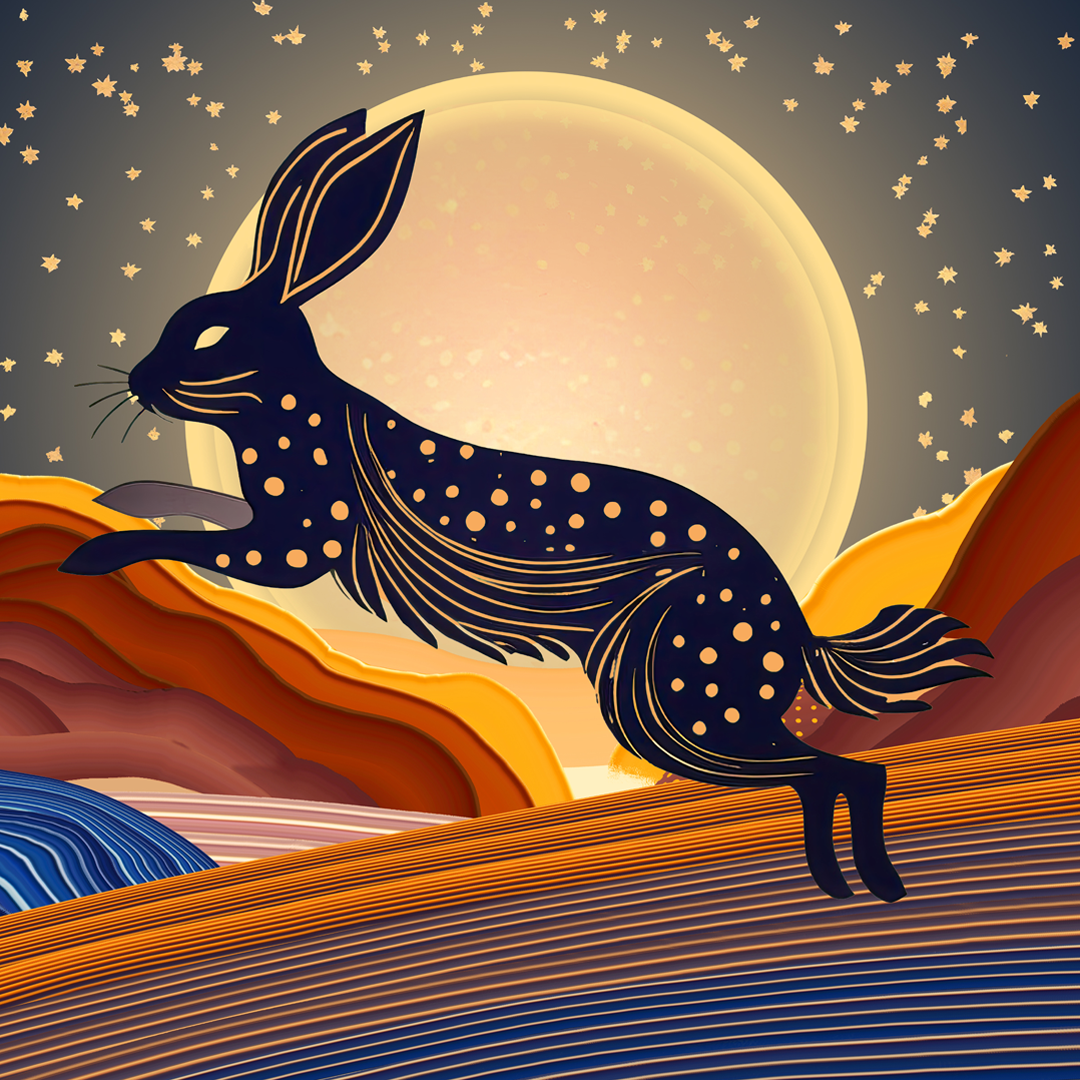Capture the magic of twilight with the Golden Sun craft kit! This downloadable collage set lets you create a stunning leaping rabbit under a radiant golden moon. Perfect for adding warmth and whimsy to your creative projects!